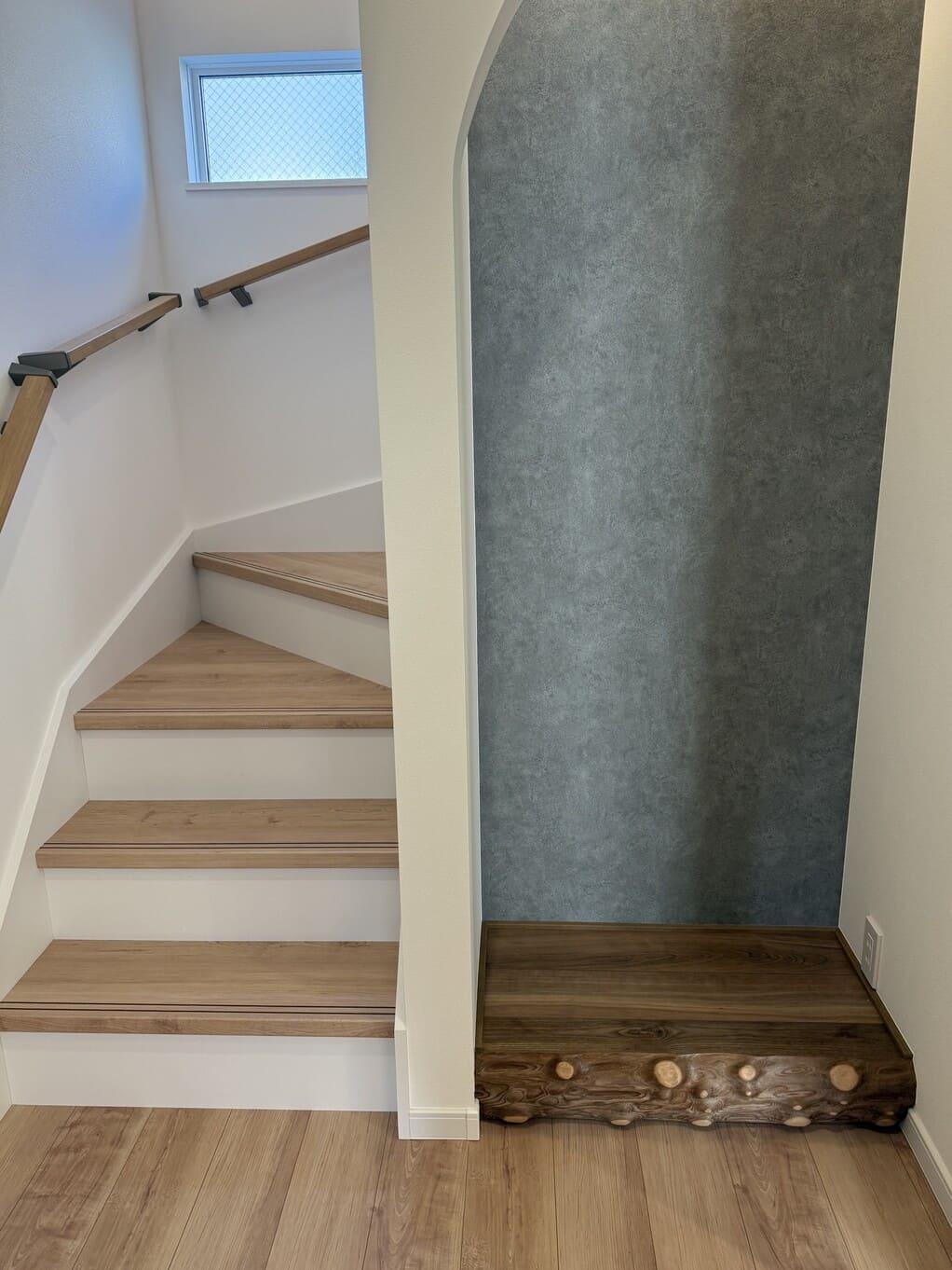 そしてご実家の床の間の柱は玄関ホールの一部に使われ存在感を放っています。